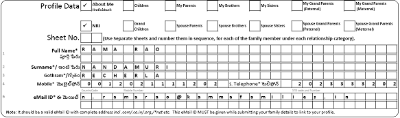 kammafamilies@yahoo.com or, kammafamilies@gmail.com.It is not necessary to provide details of all family members in single step. It can be done in stages.